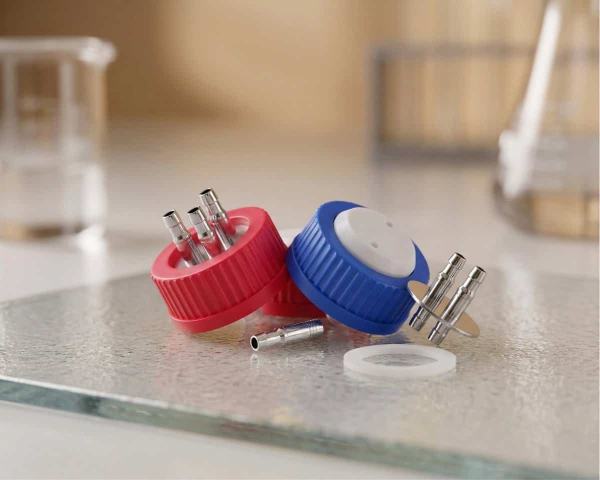 Mastelf Glass Reagent Bottles are designed for safe storage of solvents and reagents, available in GL32, GL45, and GL60 sizes. Compatible with major HPLC systems, they provide reliable sealing and chemical resistance for laboratory applications. The Safety Caps are available in a broad range of combination options including the number of ports/holes, tubing sizes (from 1/4, OD to 1/16/OD), and nitrile or stainless steel material. If these are not up to your request, please also contact us by email or give us a call directly, we’ll help to reah out timely.